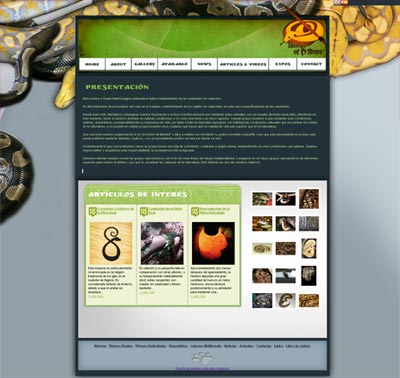 La página web del criadero de «The Art Of Pythons» esta estructurada de manera distinta al resto de páginas webs realizadas por EasySite. Esto es debido a las diferencias existentes entre un criadero de reptiles, en este caso de serpientes pitón y un criadero de perros.