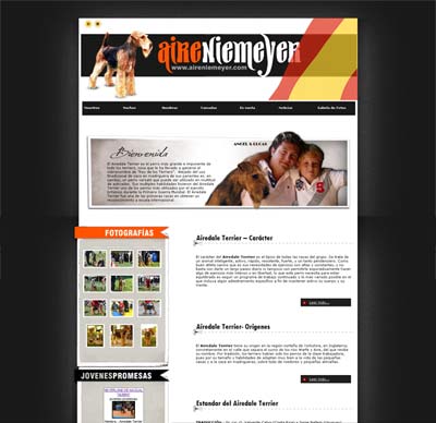 Con la web de EasySite el criador de Airedale Terrier Aireniemeyer, ofrece al posible interesado toda la información que pueda resultar de interés, ordenando la página web en apartados correctamente diferenciados, tales como; noticias, artículos, videos, galerías de fotos, las camadas anteriores, los cachorros que estén en venta o los cruces pensados para el futuro, los perros disponibles para monta, y una ficha de cada perro, donde se muestren los datos más básicos, como el color, raza, logros en campeonatos, pruebas de trabajo, notas de salud, y un práctico pedigri interactivo donde conste toda la genealogía de cada perro.