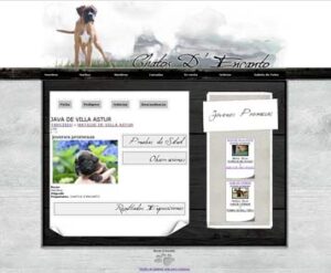 La página web del criadero Laurus Nobilis nos muestra dos apartados claramente diferenciados según la raza, con una botonera en común que informa sobre el criadero y una botonera distinta en cada apartado que muestra los contenidos propios de cada raza.